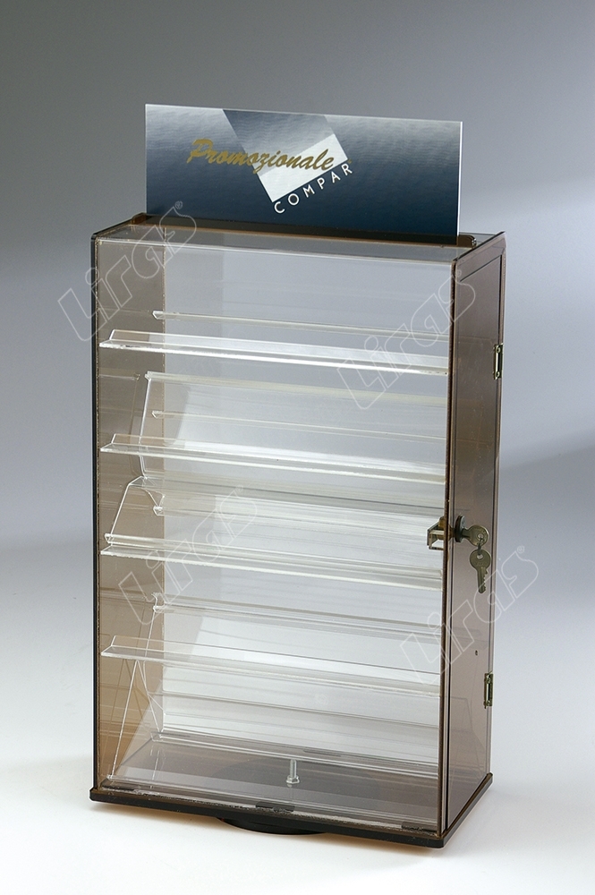 Le caratteristiche di leggerezza e trasparenza dei materiali plastici impiegati, contribuiscono a un’esposizione raffinata e di sicuro impatto visivo.